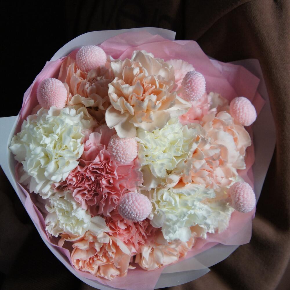 Букет из нежных диантусов с шариками краспедии в Сенгилее