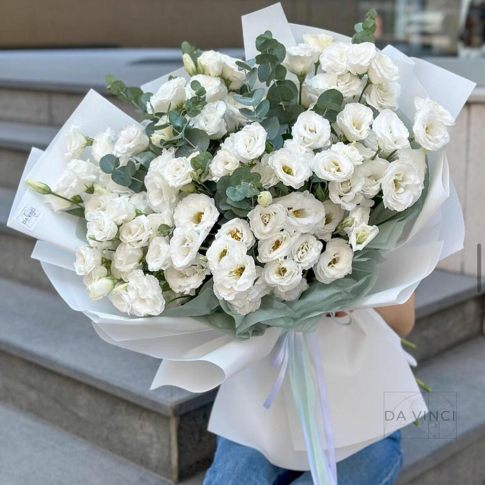 Композиция "Жоан" из лизиантусов и эвкалипта в Сенгилее